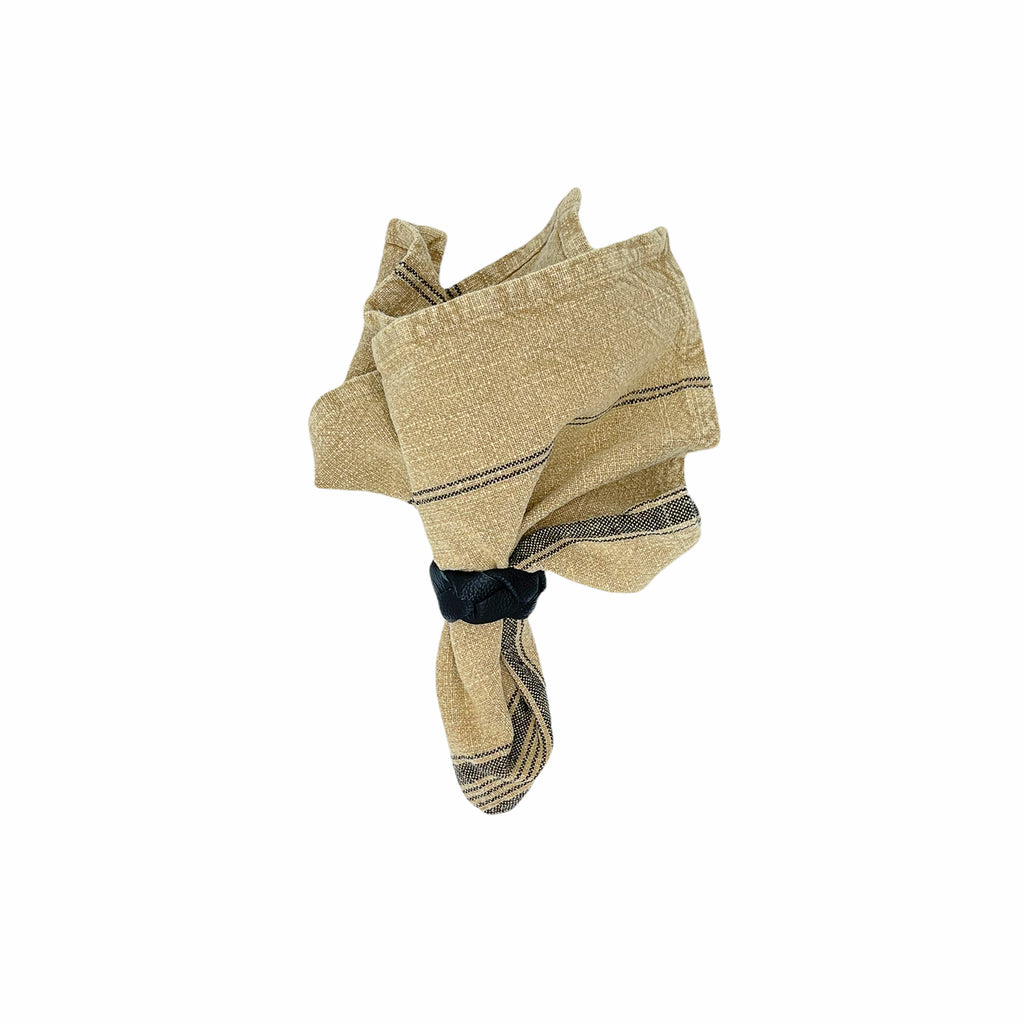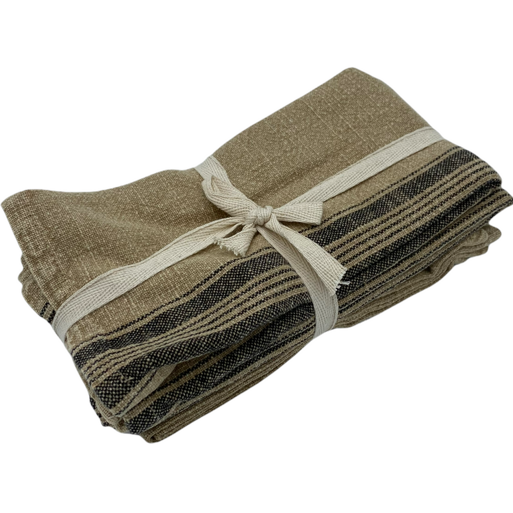 Borrowing its striped design from vintage grain sacks used on farms and homesteads in France, our napkins add a rustic, homey touch to the table. Woven of a cotton and poly blend, they closely resemble the storied originals.