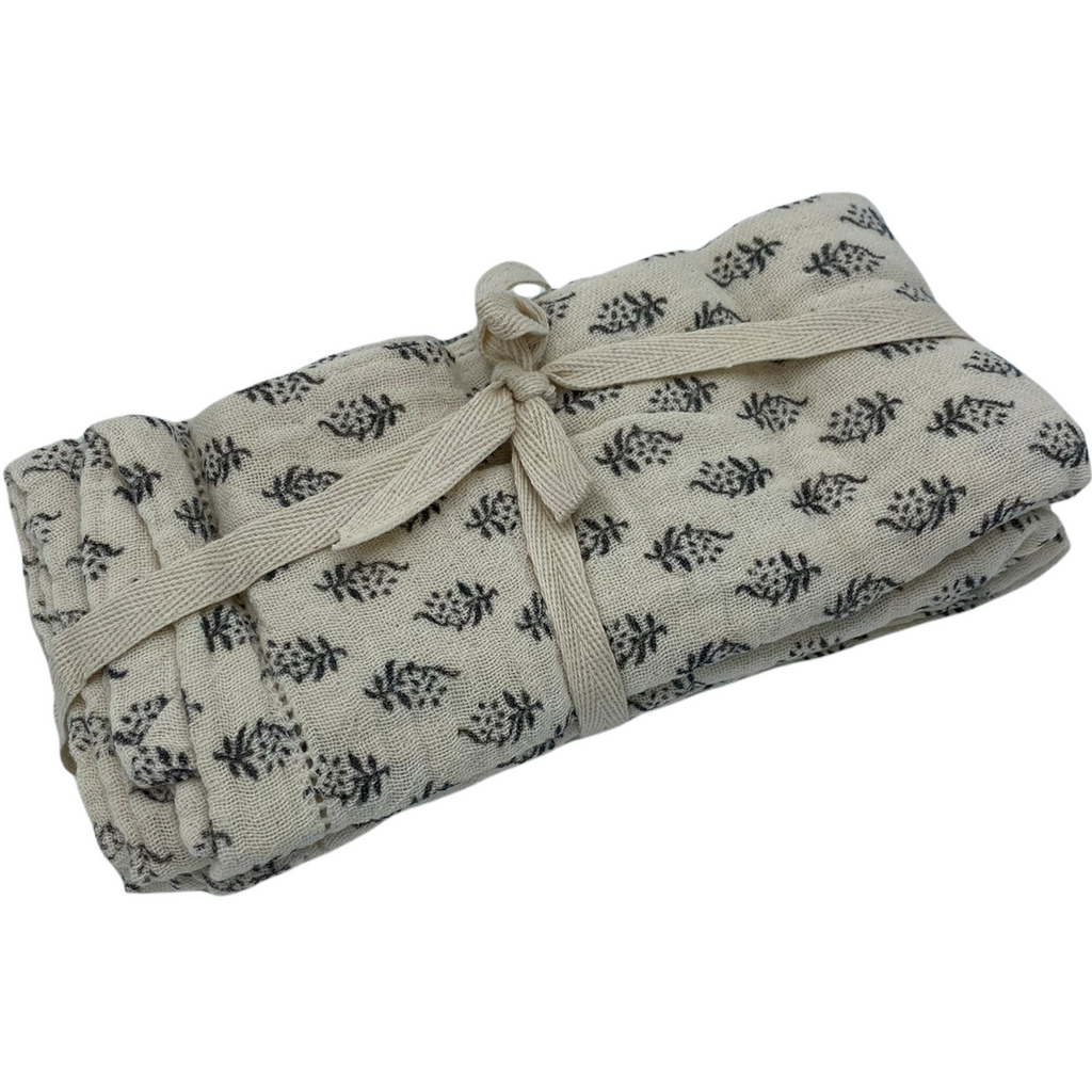 Adorn your table with these beautiful napkins with a modern Scandinavian floral pattern. Perfect in your picnic basket or for using every day in your natural home. We absolutely love the textural quality of this thick cotton gauze, which gets softer and softer with every wash.