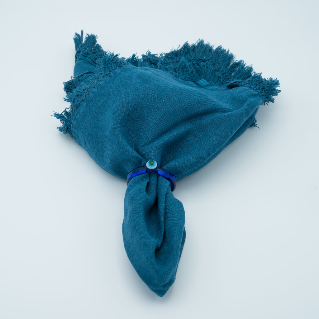 This stone-washed fringe navy napkins will coordinate with any decor and can be used year-round. These beauties will stand the test of time. Pair them with our St Tropez placemat for a chic effortless look.
