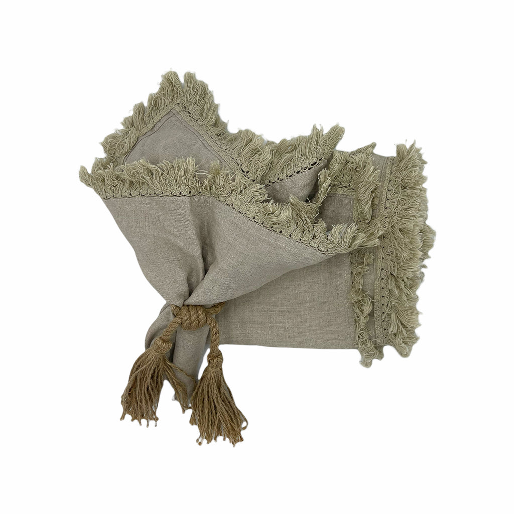 This stone-washed fringe navy napkins will coordinate with any decor and can be used year-round. These beauties will stand the test of time. Pair them with our new mud cloth vinyl placemat for a chic effortless look.
