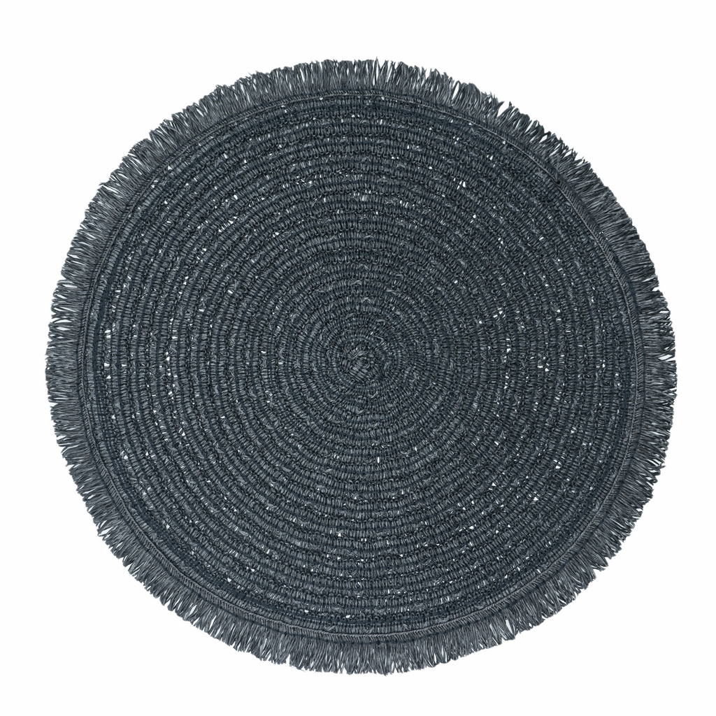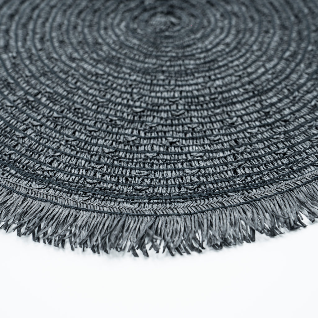 Made from tightly woven coated paper our round and braided placemats feature a charming scalloped weave and self-fringe. This black placemat, paired with colorful table linens, will bring a chic look to your table setting.