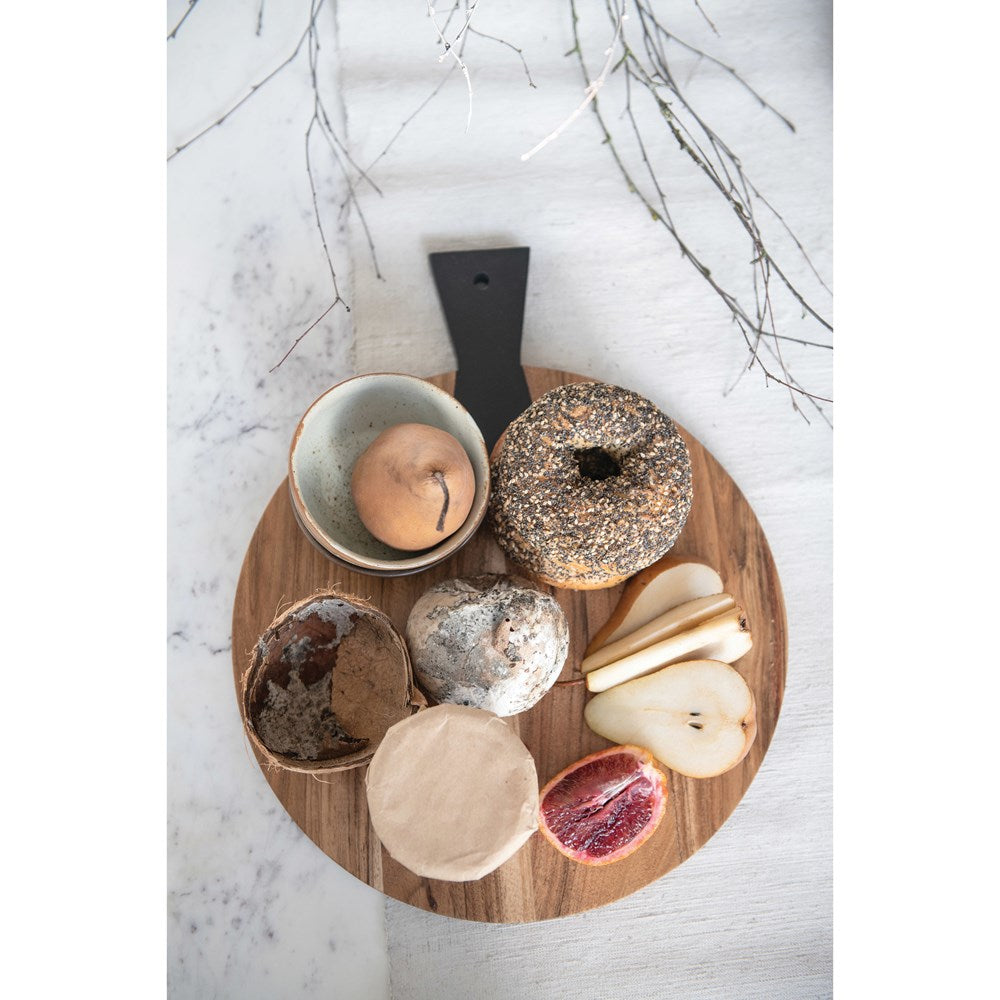 Your guests will admire the beauty of this round acacia wood cheese board. The grain on this is stunning and the beautiful black handle gives it that extra visual interest.